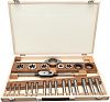 Резьбонарезной набор Bucovice 311100 содержит оснастку самых востребованных типов и размеров, а именно 18 метчиков, 6 плашек, плашкодержатель, 2 втулки для плашкодержателя и вороток для метчиков. Метчики предназначены для нарезания внутренней дюймовой резьбы в три прохода под дюймовые болты и винты, а плашки - для нарезания наружной дюймовой резьбы. Обрабатываемые материалы: углеродистая и низколегированная сталь с прочностью до 750 Н/мм², алюминий, пластик и цветные металлы. Инструменты надежно закреплены в прочном и компактном деревянном чемодане, пригодном для хранения и транспортировки.