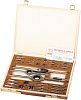 Резьбонарезной набор Bucovice 340012 содержит оснастку самых востребованных типов и размеров, а именно 21 метчик, 7 плашек, 2 плашкодержателя, 2 втулки для плашкодержателя и 2 воротка для метчиков. Метчики предназначены для нарезания внутренней дюймовой резьбы в три прохода под дюймовые болты и винты, а плашки - для нарезания наружной дюймовой резьбы. Обрабатываемые материалы: углеродистая и низколегированная сталь с прочностью до 800 Н/мм², алюминий, пластик и цветные металлы. Инструменты надежно закреплены в прочном и компактном деревянном чемодане, пригодном для хранения и транспортировки.