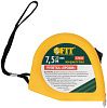 Измерительная рулетка FIT Профи предназначена для замеров расстояния и длин предметов. Применяется в портном деле, рукоделии, при выполнении ремонтных и строительных работ. Корпус изготовлен из ударопрочного пластика. Измерительная лента изготовлена из инструментальной стали, имеет защитное нейлоновое покрытие и оснащена магнитным зацепом. Имеет метрическую шкалу. Есть надежный сдвижной фиксатор, клипса и шнурок.