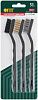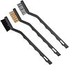 Набор FIT Мини 38453 состоит из 3 проволочных щеток с разной щетиной: термообработанная инструментальная сталь, латунированная сталь и нейлон. Щетки со стальной и латунной щетиной подходят для работы с металлическими деталями, применяются для снятия лакокрасочных покрытий, ржавчины, окалин. Подходят для работ с различными узлами и агрегатами авто- мото- и сельхозтехники, в том числе, и в труднодоступных местах. Щетка с нейлоновой щетиной может применяться для удаления загрязнений с поверхностей из металла, пластика, дерева. Нейлоновая щетина не царапает краску. Удобные пластиковые рукоятки обеспечивают простоту обработки и существенно снижают усталость при продолжительной эксплуатации. Щетина надёжно закреплена в основании, эффективно очищает даже самые сильные загрязнения. Изделия обладают высокой прочностью, стойкостью к коррозии и имеют долгий срок эксплуатации.