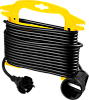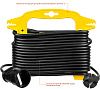 - Удобная рукоятка интегрирована в рамку, что делает транспортировку удлинителя простой и комфортной даже с длиной кабеля 50 метров.